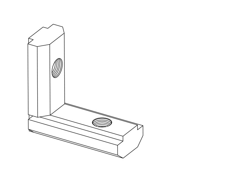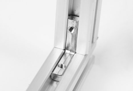 用于兩型材的直角連接,安裝時將其兩端分別插入型材槽坑內(nèi),將緊固螺絲鎖緊。根據(jù)型材的槽寬及連接方式請選用不同的角槽連接件。