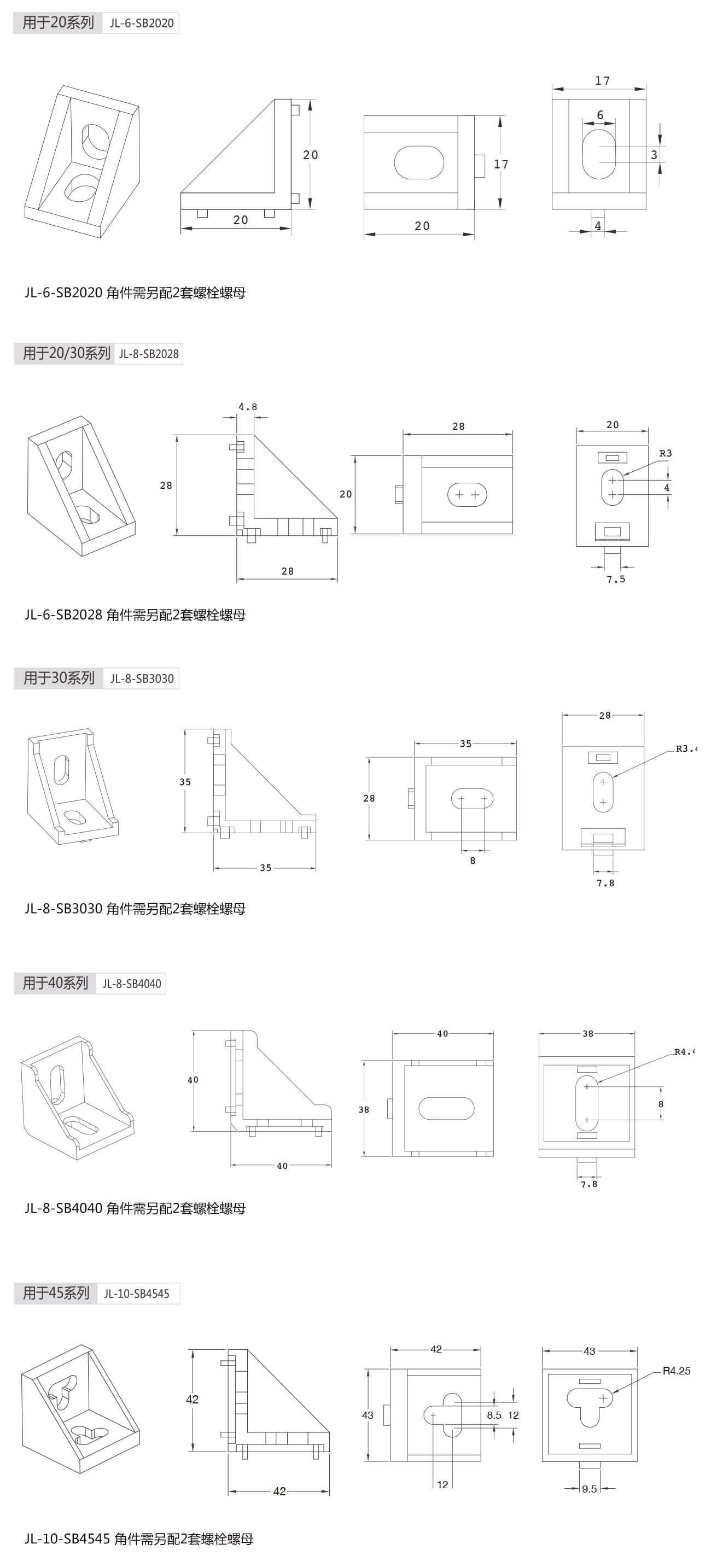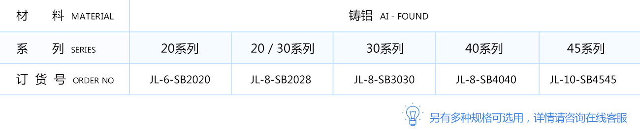 用于加強(qiáng)被連接型材點(diǎn)的支撐力,也可以用作需移動位置的型材連接方式。連接用的T型螺栓及螺母需另配。