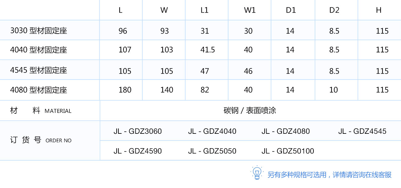用型材固定座用于型材與地面或平臺之間的支撐,可用膨脹螺栓置于地下達到固定作用。