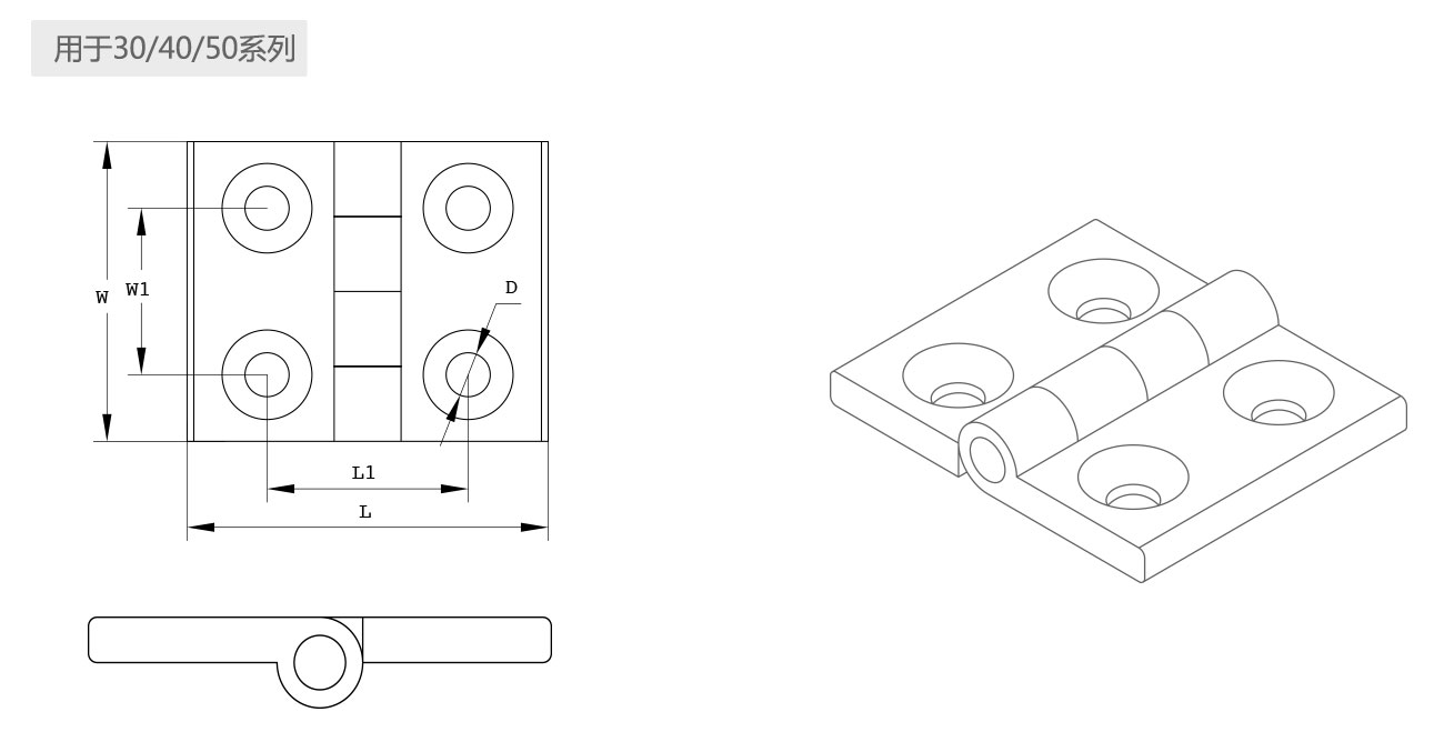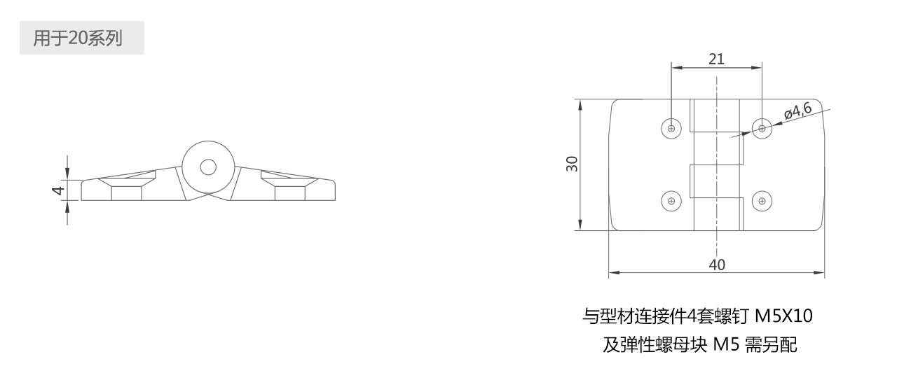 用于連接型材與型材或板之間的活動(dòng)連接。連接螺釘及螺母塊需另配。