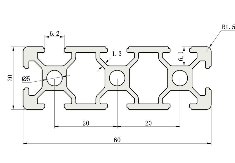 JL-6-2060E,6mm 槽寬工業(yè)鋁型材系列