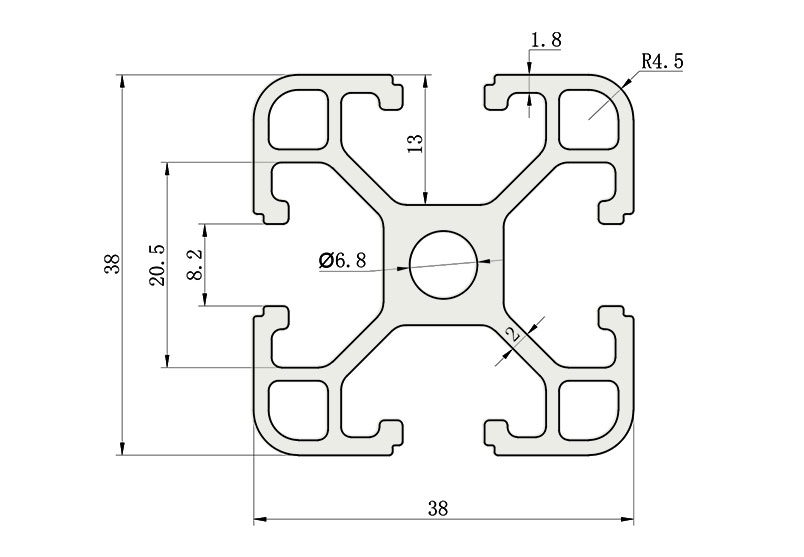 JL-8-3838E,8mm 槽寬工業(yè)鋁型材系列