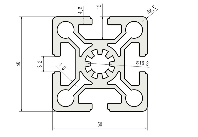 適用于應(yīng)力及強度較大的框架組合結(jié)構(gòu),它的外型采用圓角過渡,表面經(jīng)過陽極氧化處理,高雅美觀并抗腐蝕,它通常采用M12X30高強度專用螺栓加彈性扣件的內(nèi)部連接方式,堅固而又可靠,是工業(yè)框架應(yīng)用較為廣泛的型材之一。