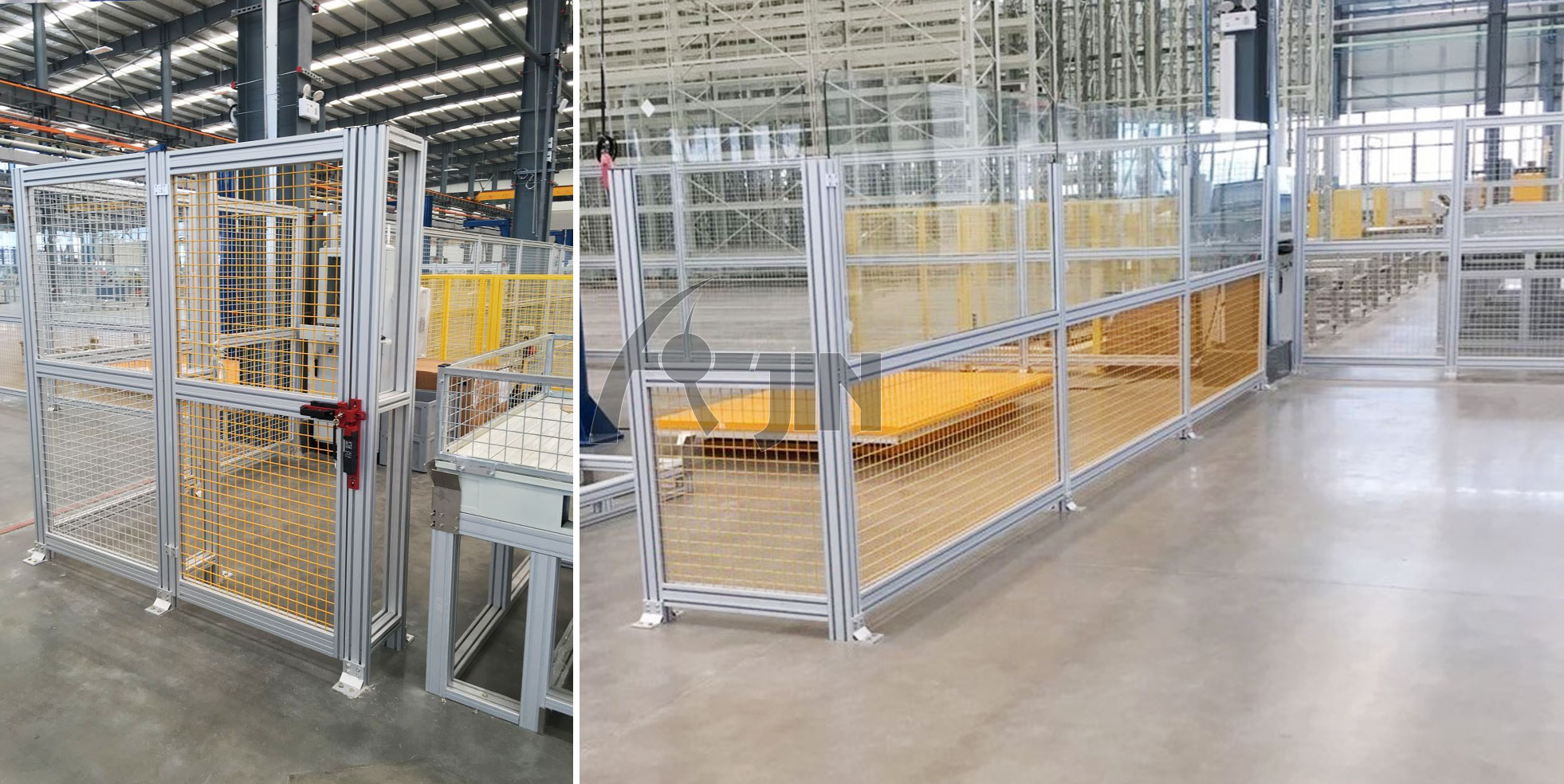 機械防護主用采用網(wǎng)和板兩種形式,常用于機器人外圍防護、汽車生產(chǎn)車間外圍防護、機械設備外圍防護等,可有效地保護設備,保障安全生產(chǎn)。