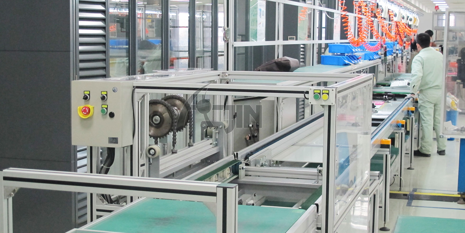 生產(chǎn)流水線是在一定的線路上連續(xù)輸送貨物搬運(yùn)機(jī)械,又稱輸送線或者輸送機(jī)。按照輸送系列產(chǎn)品大體可以分為:皮帶流水線、板鏈線、倍數(shù)鏈線、插件線、網(wǎng)帶線、懸掛線及滾筒流水線這七類流水線。一般包括牽引件、承載構(gòu)件、驅(qū)動裝置、張緊裝置、改向裝置和支承件等。流水線輸送能力大,運(yùn)距長,還可在輸送過程中同時完成若干工藝操作,所以應(yīng)用十分廣泛,使用我公司生產(chǎn)的各種生產(chǎn)流水線可以為客戶大幅節(jié)約人工、提升效率!